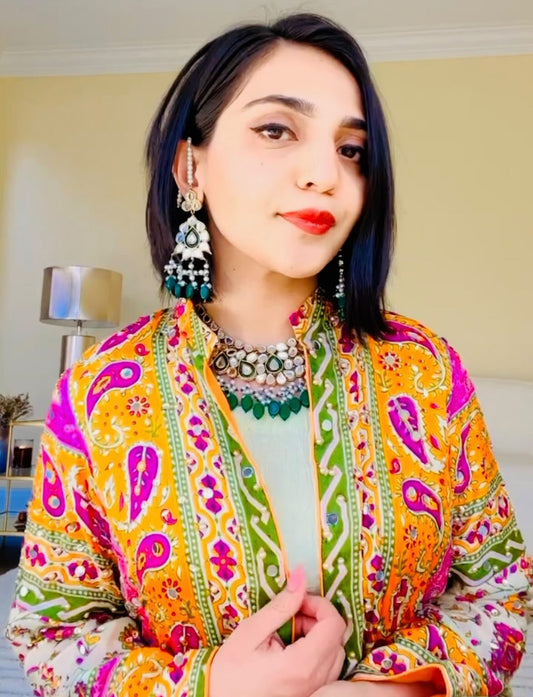 Colorful Jacket with crush maxifor Pakistani / South Asian weddings in USA